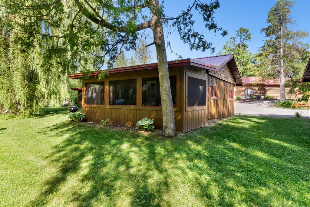 Enjoy the serene beauty of the Sturgeon River from the screened-in front porch, furnished with two rocking chairs and a table with 4 chairs for porch dining—ideal for morning coffee or evening relaxation. With its stunning river views and peaceful ambiance, Cabin 5 promises a memorable and tranquil retreat.